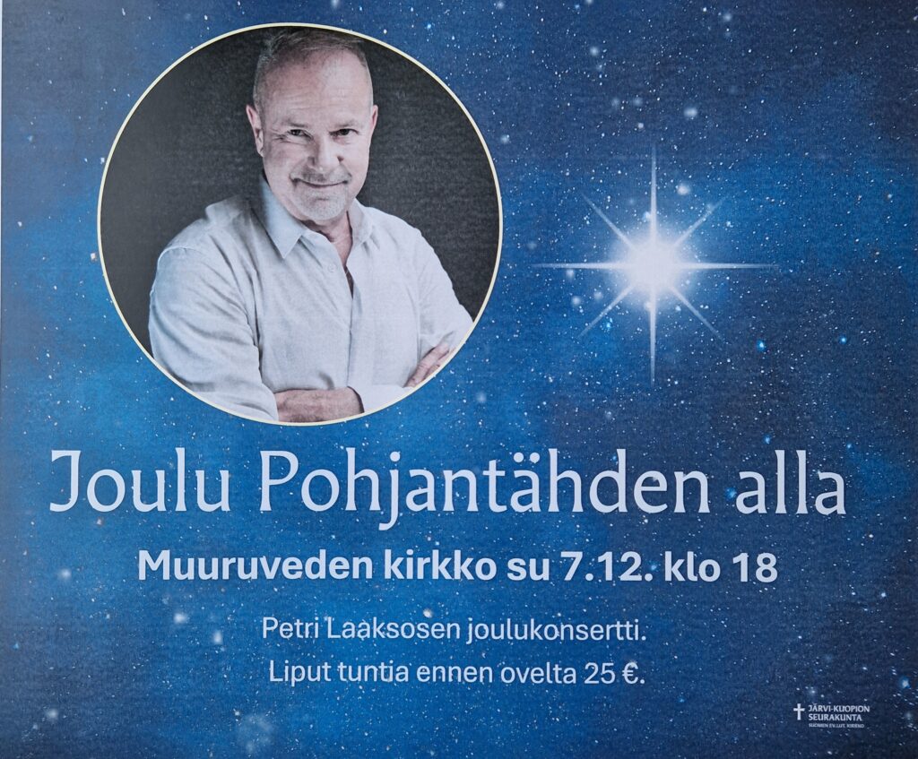 Laulajanuraansa juhliva Petri Laaksonen saapuu konsertoimaan Haapavedelle adventin ajan laulujen merkeissä. Jo lapsena Varsinais- Suomessa kasvanut muusikon alku ihastui joululauluihin. Ammattimaiseksi laulaja-säveltäjäksi ryhdyttyään Laaksonen halusi säveltää myös uusia joululauluja, joita onkin julkaistu kolmen albumin verran. Lumivalkeaa, Talven syliin, sekä Joulu ikkunan takaa – kauneimmat joululauluni. Näiden albumien laulut muodostavat myös joulunajan 2024 konserttien rungon Laaksosen klassikkosävelmällään, Täällä Pohjantähden alla ohella. Petri Laaksonen toivookin, että nämä uudemman ajan jouluiset laulut voisivat koskettaa ja puhutella tämän päivän ihmistä tuoreella tavalla.